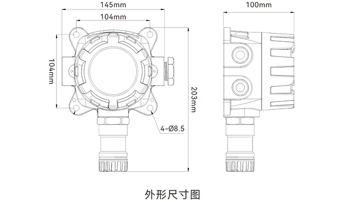 电气接口两接口,NPT3/4″(F)  ( 可按要求配置接口数量及规格尺寸)